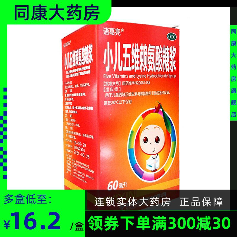 Всего 18 юаней/коробки] Чжугл Лян Детский пять -мерный сироп лизина 60 мл/бутылка не хватает витамина D