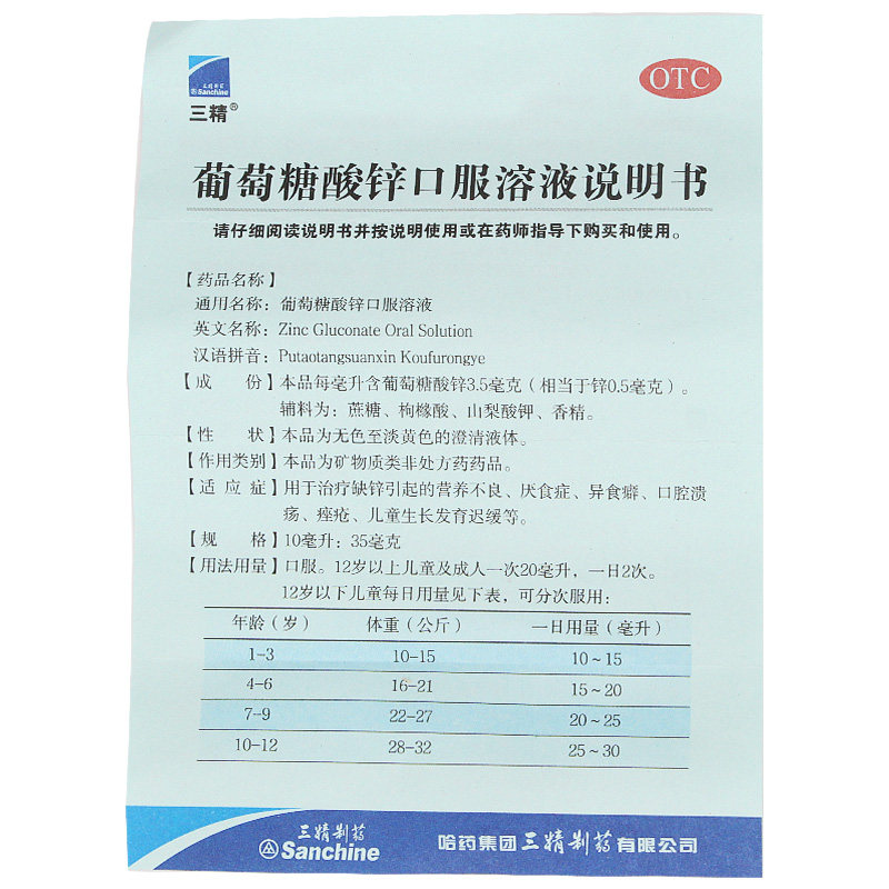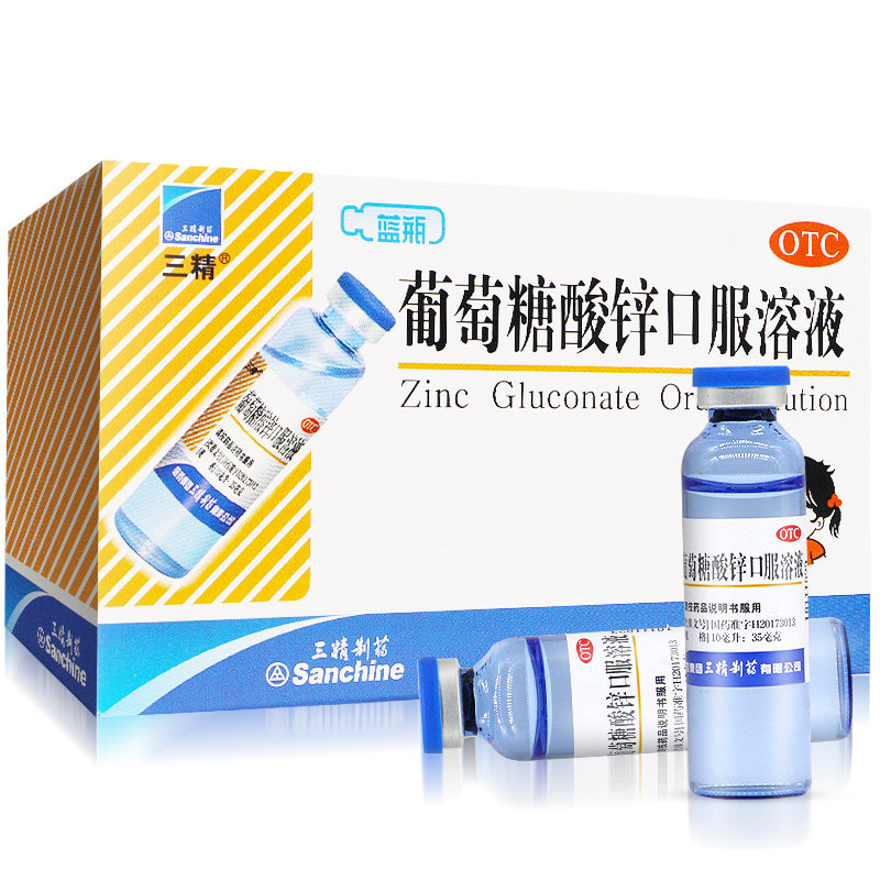三精 Бренд глюкоза цинк пероральный жидкость для взрослых голубых бутылок Детская цинковая добавка младенца 12 кальциево -железо цинк раствор рот
