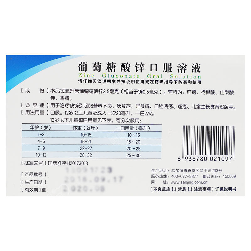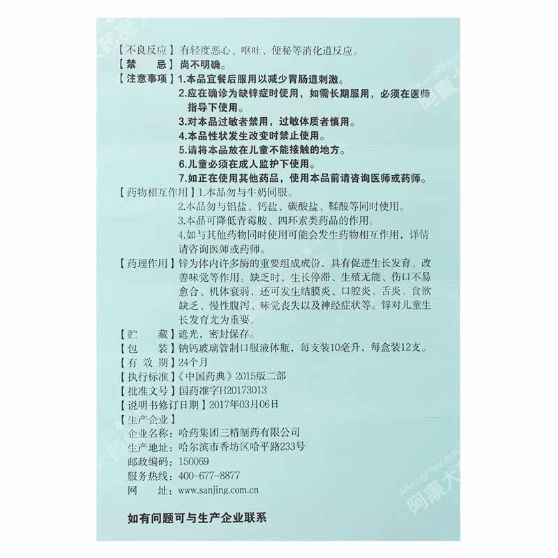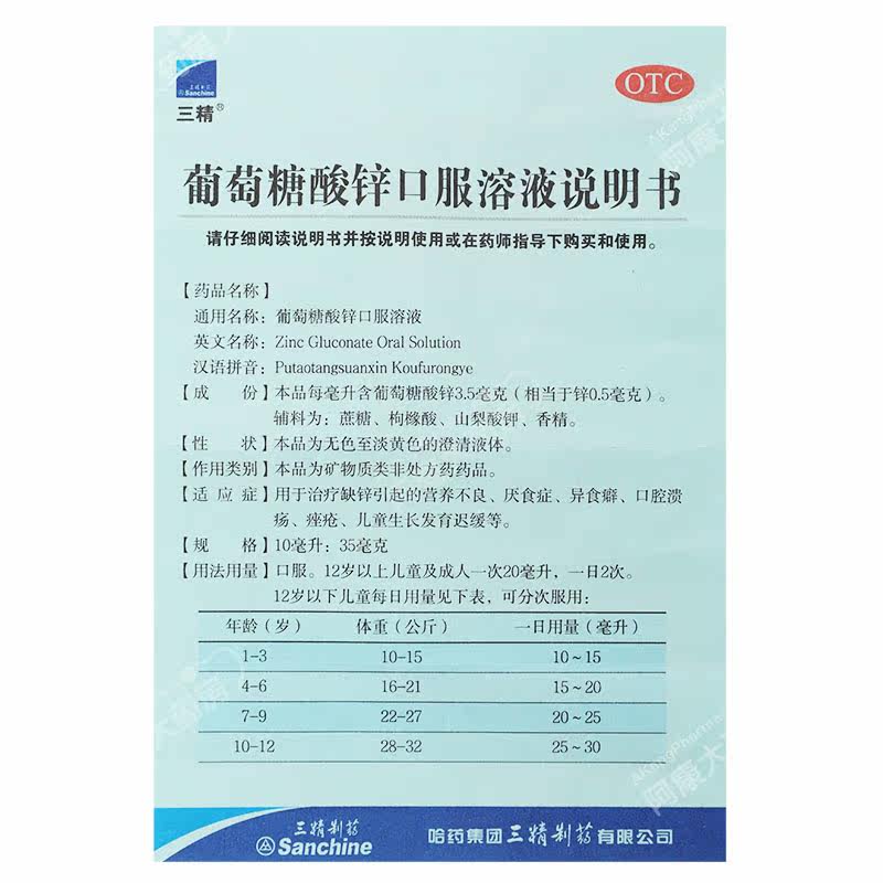 三精 Цинковый пероральный раствор глюкозы цинка 10 мл: 35 мг*12 поддержка/лекарство для коробки