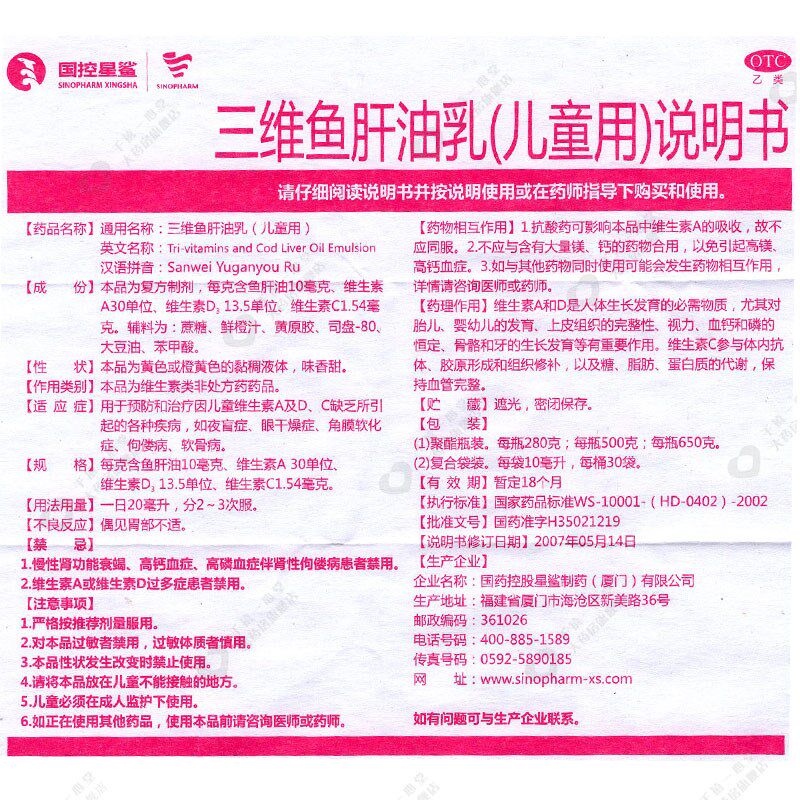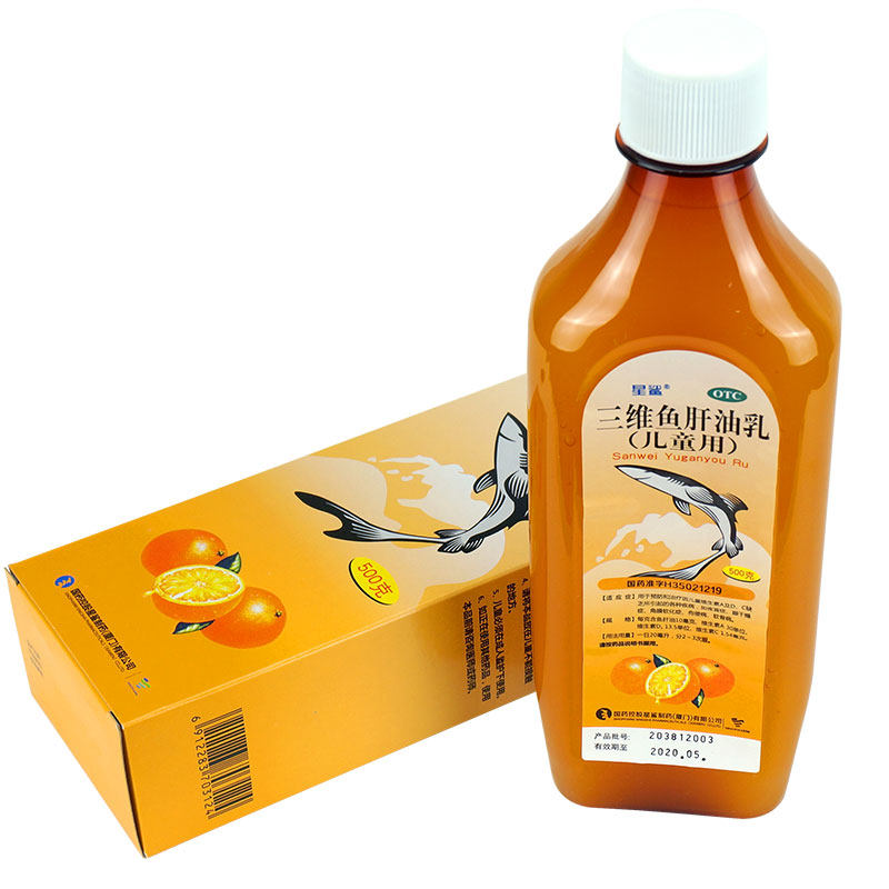 星鲨 Трехмерное масло в печени трески 500 г детей детей и нефть маленьких детей.