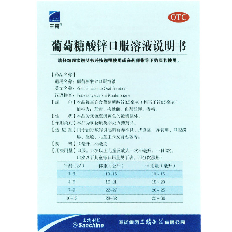 三精 Цинк -пероральный раствор глюкозы цинк пероральный раствор 12 Цинк Дополнительное недоедание и развитие прыщей анорексии медленно