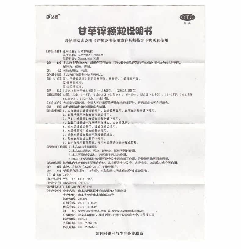 Daini Ganxin солодка частицы цинка 10 мешков с дефицитом цинка, вызванным развитием анорексии детей YP