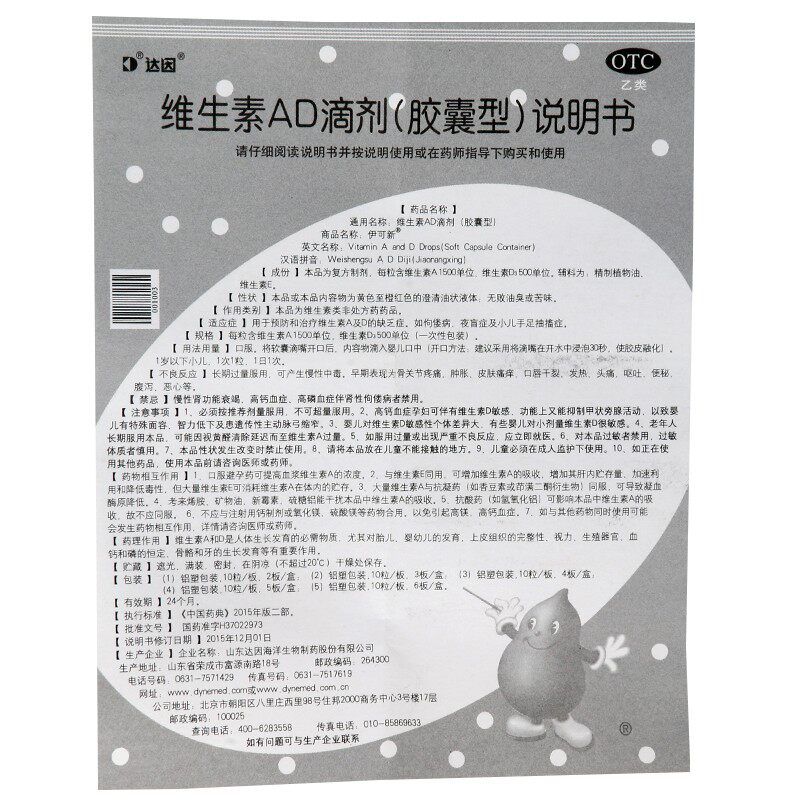 伊可新 Yikexin Vitamin AD Drop (капсула тип 0-1 года) 60 капсулы/коробка Rhy