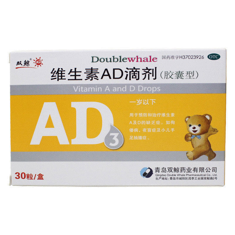 双鲸 Витаминный AD падает 30 капсул под 1 год.