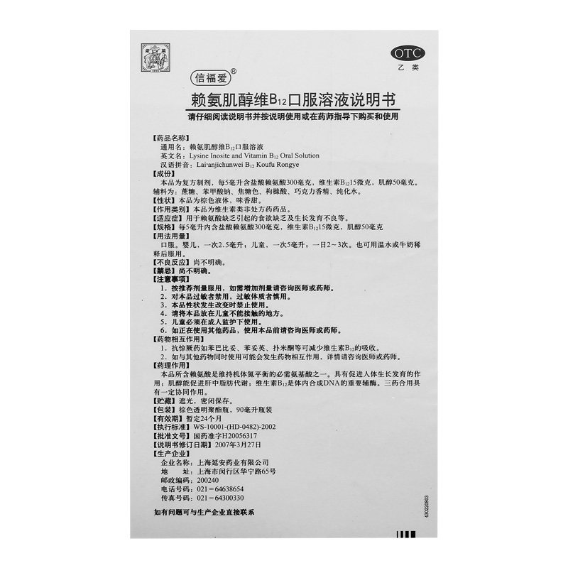 信福爱 Лизостеритол витамин B12 раствор перорального раствора 90 мл*1 бутылка/рост ящика и плохое добавление развития к детям