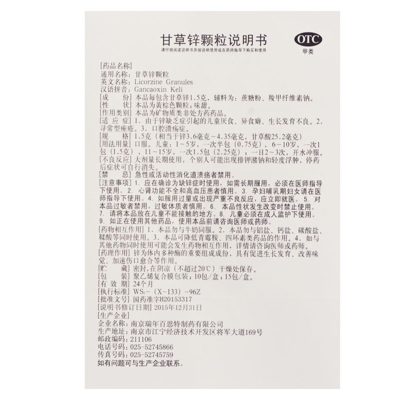 瑞年 Солодка цинка гранулы 1,5 г*15 упаковок/коробочный фармацевтический магазин.