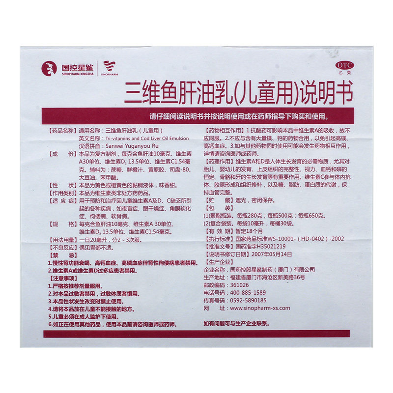 星鲨 Трехмерное рыбное масло в печени молоко 500 г детской витаминной AD и C отсутствует сушеные рыбы, сушеные рыбы