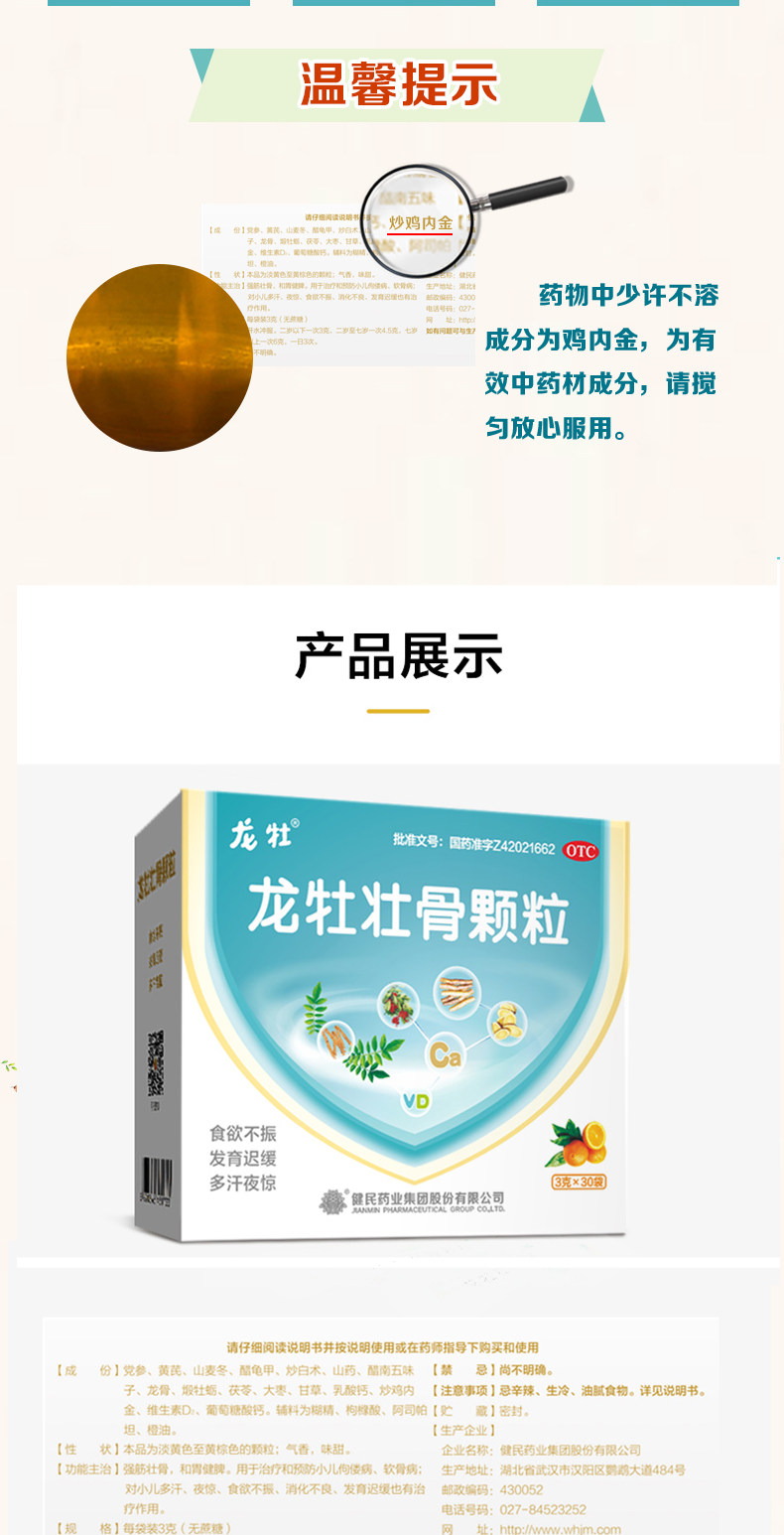 龙牡 Гранулы Чжуангу для младенцев и детей укрепляют селезенку и желудок, чтобы регулировать слабый желудочно -кишечный кишечник и расстройство желудка у младенцев и детей
