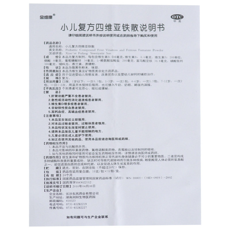 金维康 Педиатрическое соединение Sifang Tie San 10g*12 упаковки/коробка