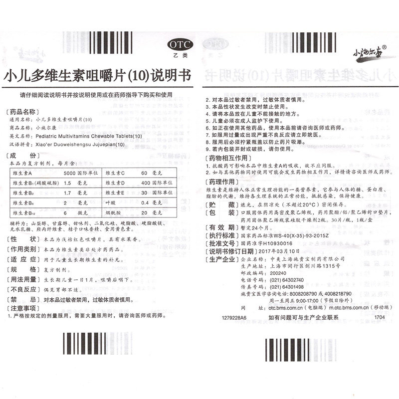 小施尔康 Детские мультивитаминные жевательные таблетки 30 таблеток в период роста для дополнения витаминов и минералов для развития детей.