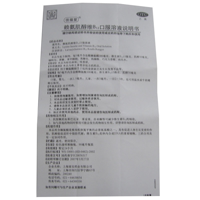 信福爱 Лизостеритол витамин B12 Раствор перорального раствора 90 мл*1 бутылка/коробка