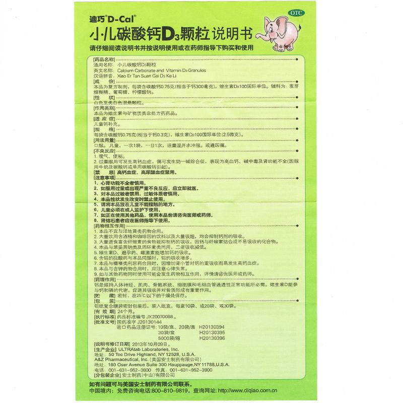 W Di Qiao Child Calcium Carbandate D3 Гранул Витамин D3 10 сумка Antone Pharmaceutical (Zhongshan) Co., Ltd.