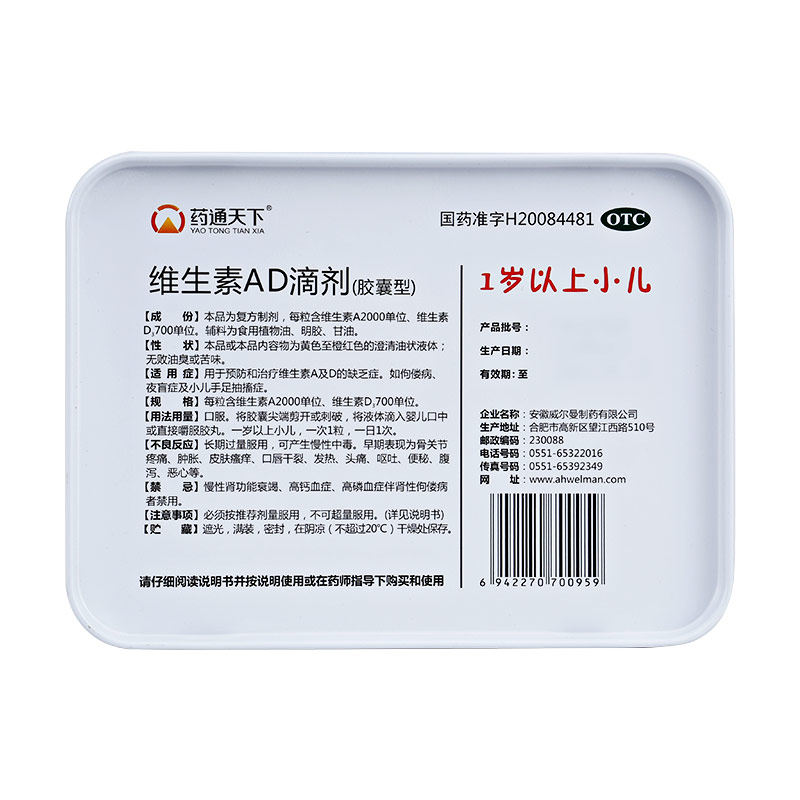 药通天下 Витаминовые AD каплы 40 капсул за однолетние добавки витамин A и D 佝偻 Ночная слепота.