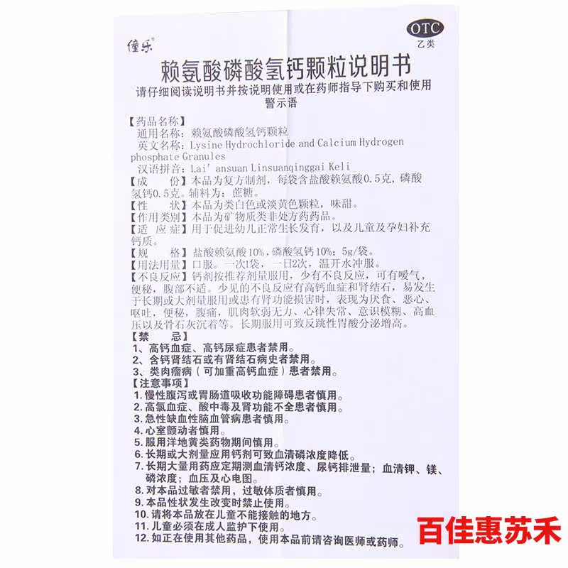 僮乐 Лизин -кальций фосфатные гранулы 5G*6 мешков/ящик, чтобы способствовать нормальному росту и развитию детей в дополнение к кальция