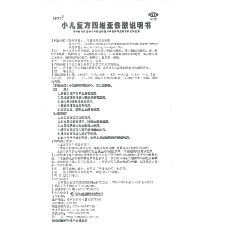 Сяньвей Детский клык клык клык Сан Сан -Санда 15 мешков частиц добавки железа способствует развитию кости развития скелета младенца. Отсутствие кальция. Отсутствие кальция