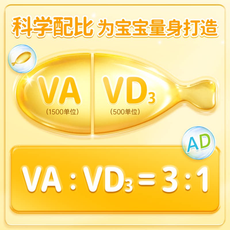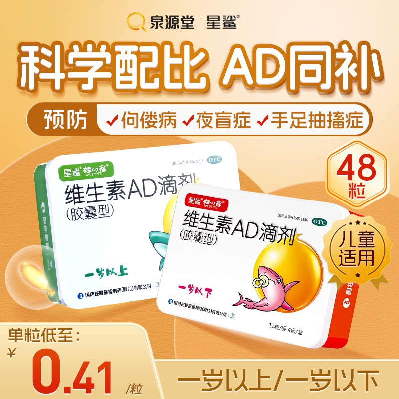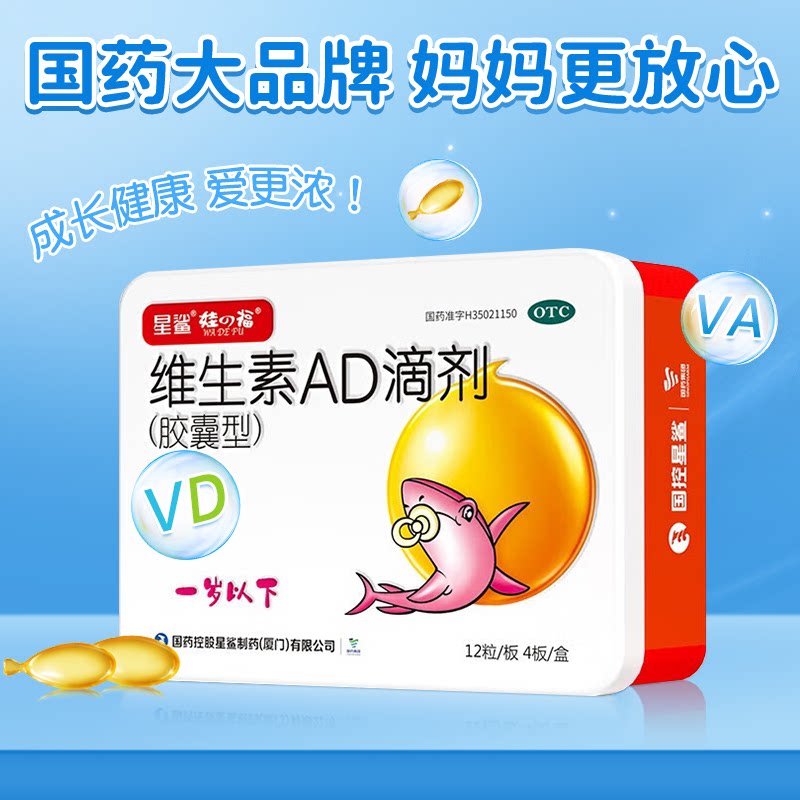 Звездный аборник Витамин AD падает 48 капсул за год, капсула года, один год, один год, младенец и маленькие дети