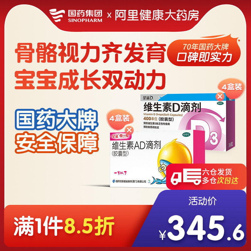 Партнер по питанию] Звездный аварийный витамин витамин витамин витамин 4 коробки плюс витамин AD капли 36 капсул 4 коробки дополнение к добавлению D D