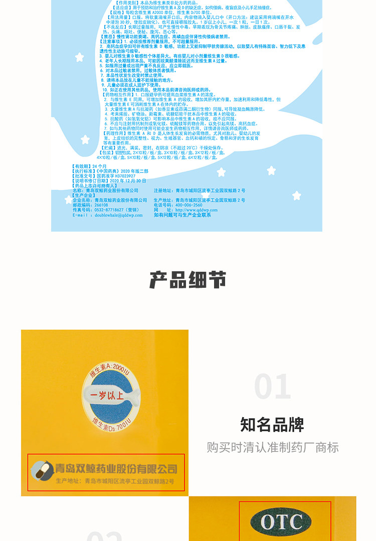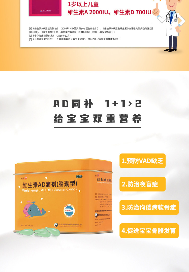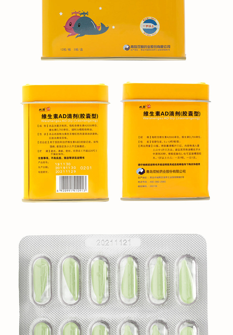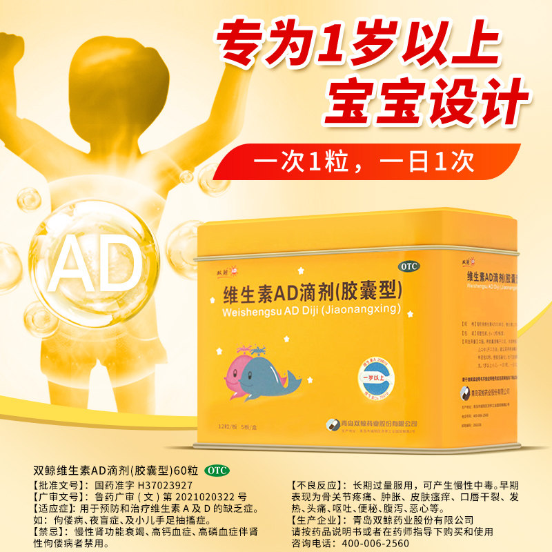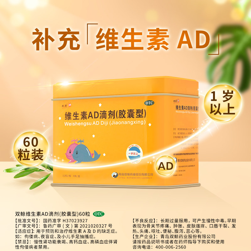 Двойные киты (медицина) Витаминовые AD -капли (капсула) 60 кальциевые демонины кальциевых детков 1 -летнего ребенка