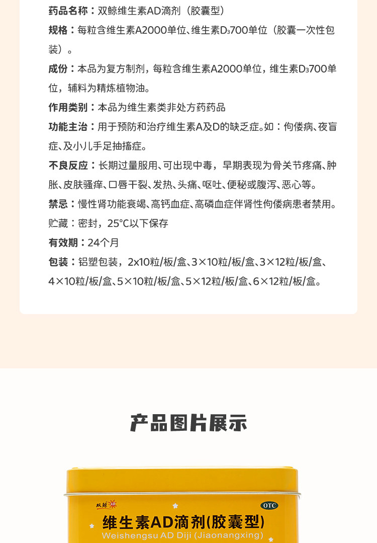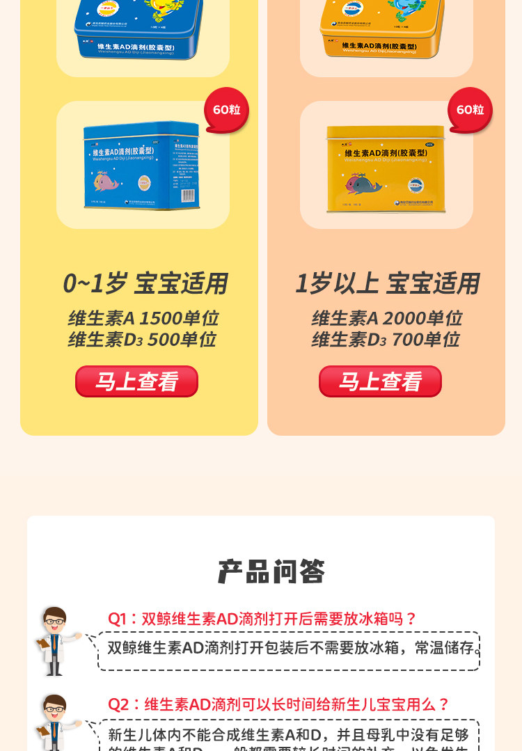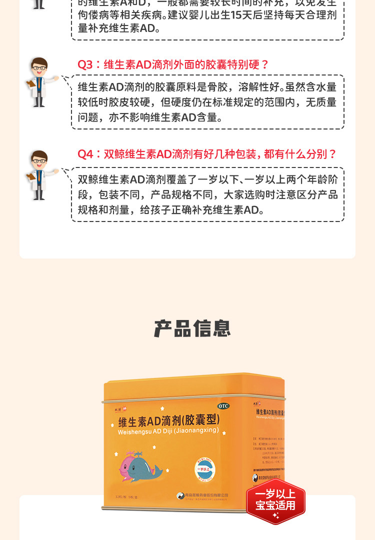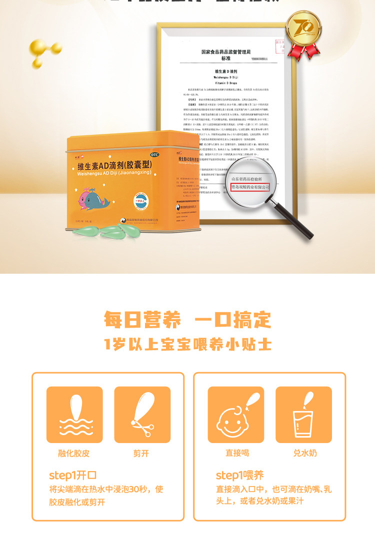 Двойные киты (медицина) Витаминовые AD -капли (капсула) 60 кальциевые демонины кальциевых детков 1 -летнего ребенка