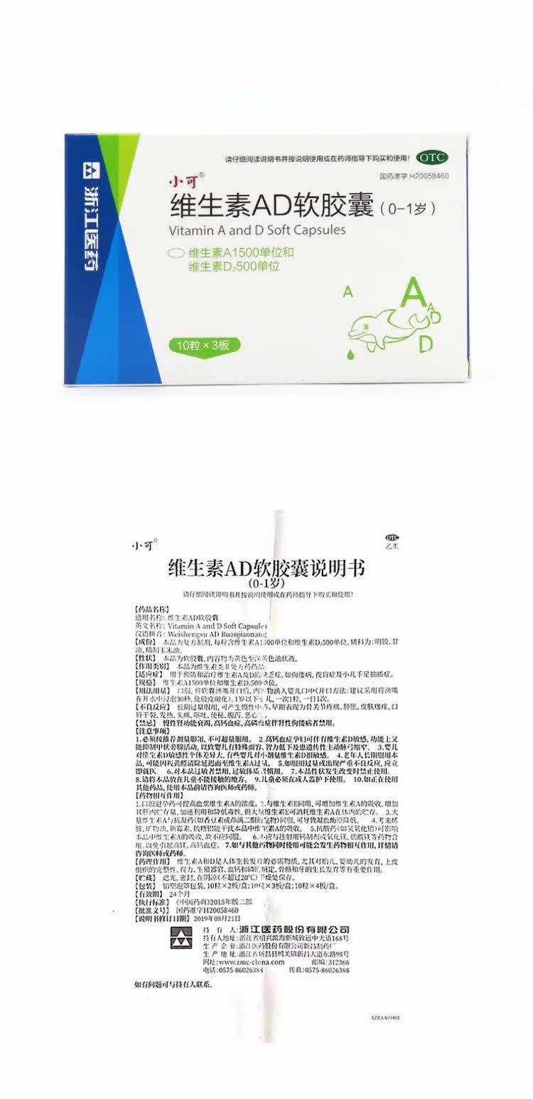 - Yikexin Vitamin AD Drop (тип капсулы) (0-1 года) 30 капсулы/коробка 1 коробка