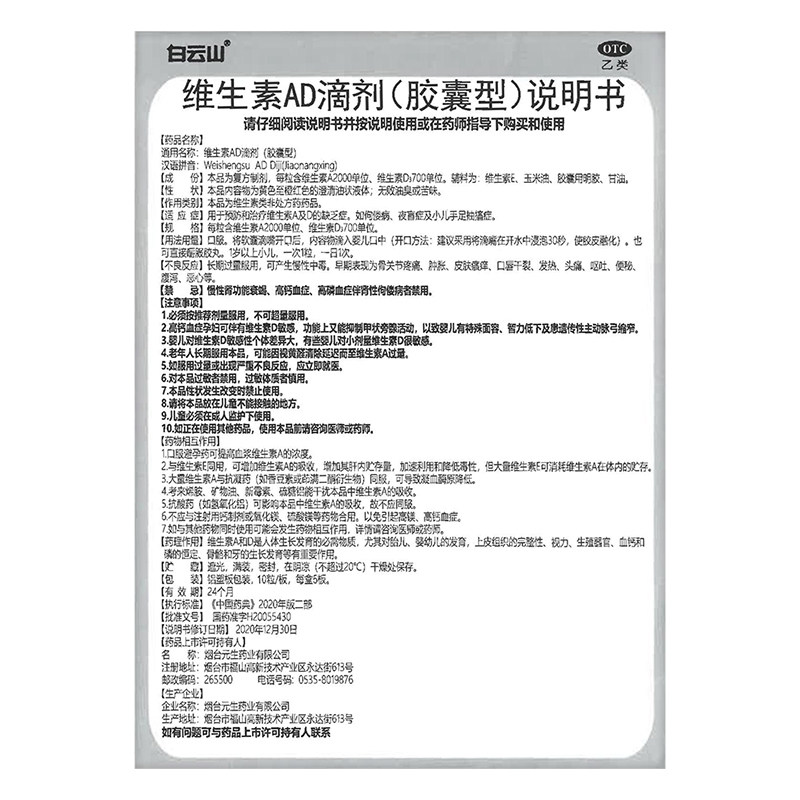 Baiyunshan Vitamin AD Cancossed Capsule Prevention Capsule Capsule Night Blind Babies Babies D3 Cald Calcium