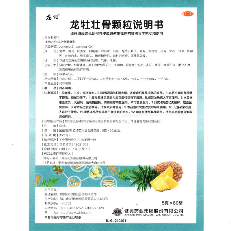 Цзянмин Лонгчжу Чжуан Гранулы костей 60 мешков гранул детей с задержкой пота аппетит, потеря аппетита, здоровая селезенка