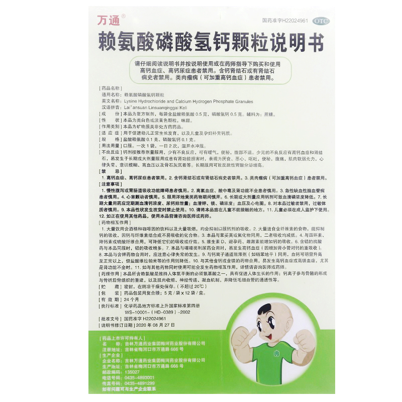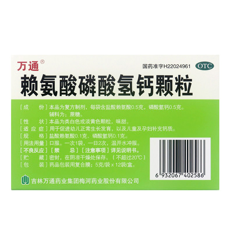 万通 Лизин -кальций фосфатные гранулы 5G*12 мешков/ящик для стимулирования роста и развития детей Дополнительный кальций