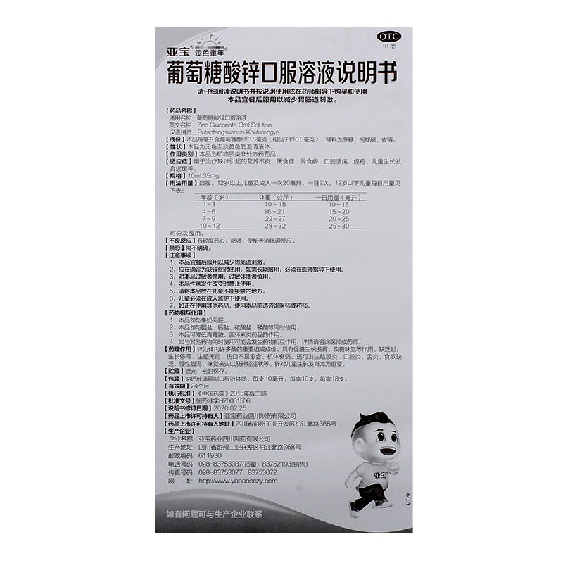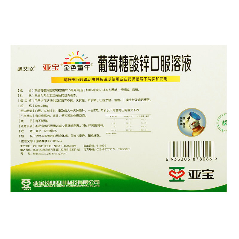 金色童年 Оральный раствор цинка глюкозы используется для лечения недоедания, вызванного дефицитом цинка