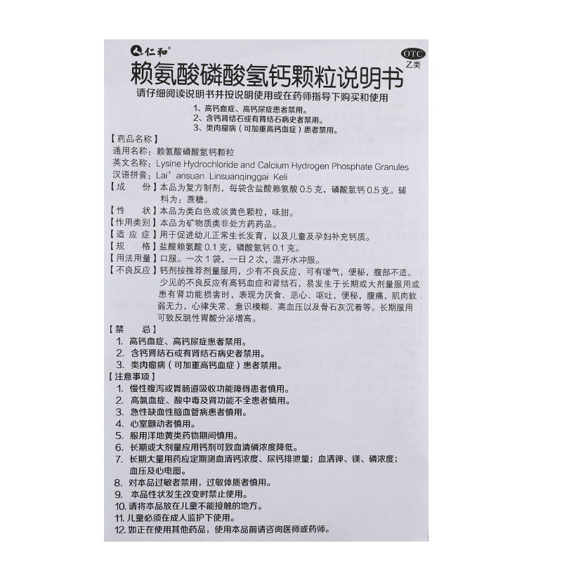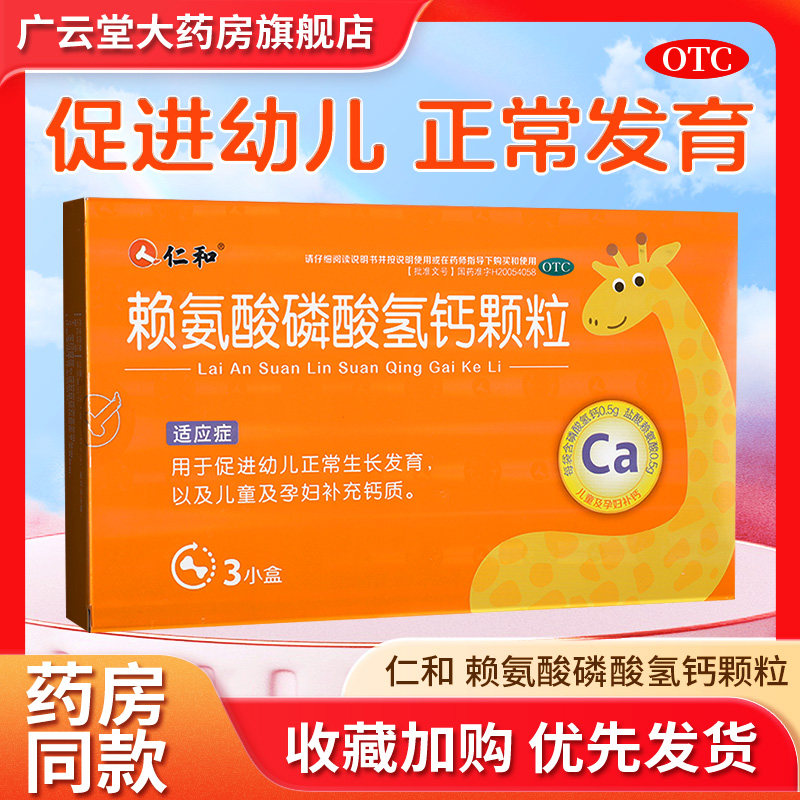 仁和 Лизин кальций водород фосфатный гранулы 24 пакета добавки кальция для детей у беременных, способствующих нормальному развитию маленьких детей GQ