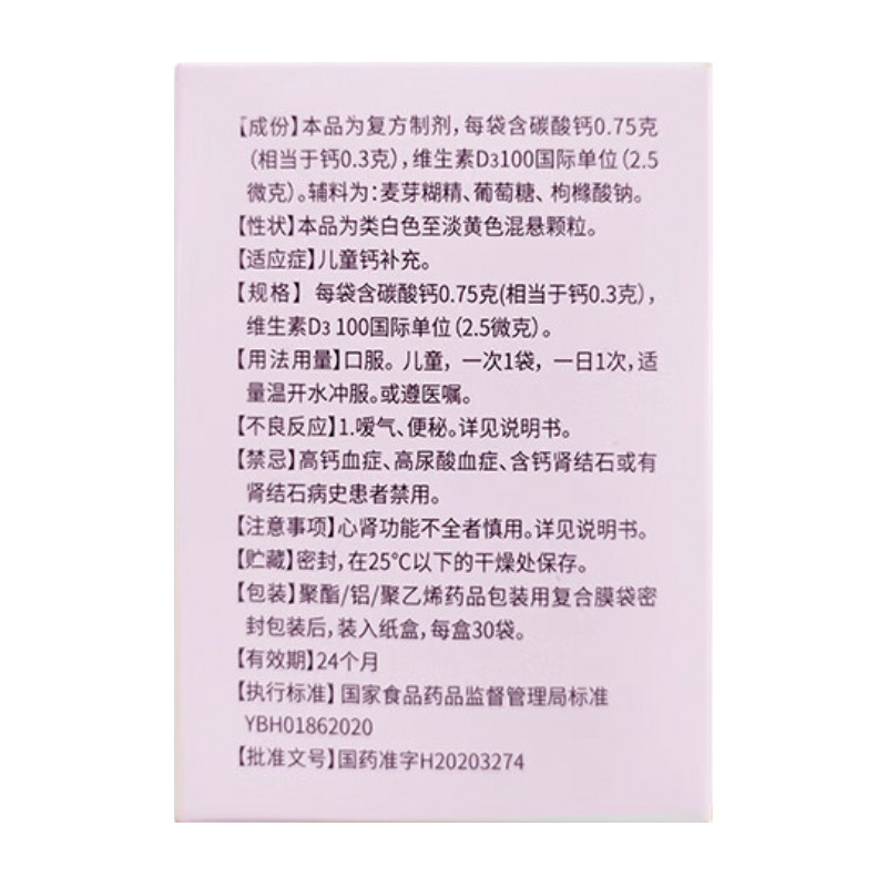 金色童年 Педиатрический карбонат кальция D3 Гранулы 0,75 г: 100 iu*30 мешков/коробка детского кальция.