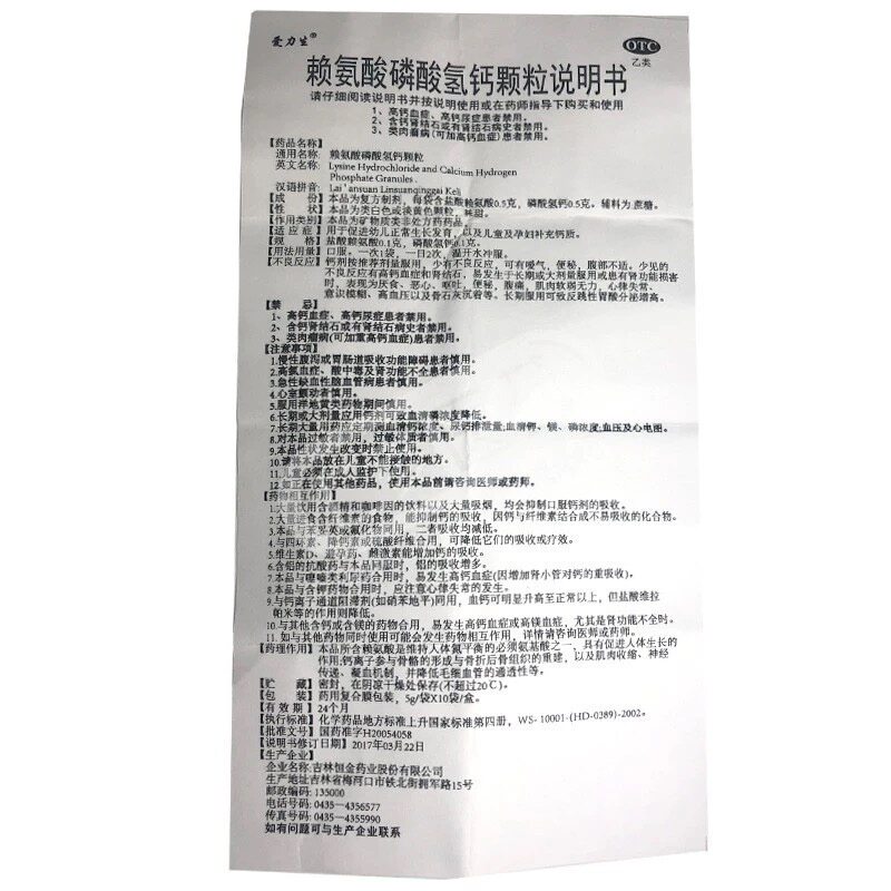 爱力生 Лизин кальций фосфатные гранулы 5G*10 мешков*3 коробка/коробка