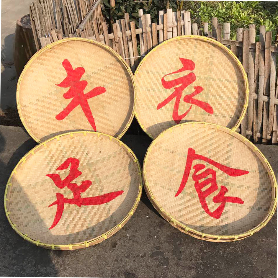 - Пластинка из тонко плетеного бамбука диаметром 45 см, двухслойная (с надписями)