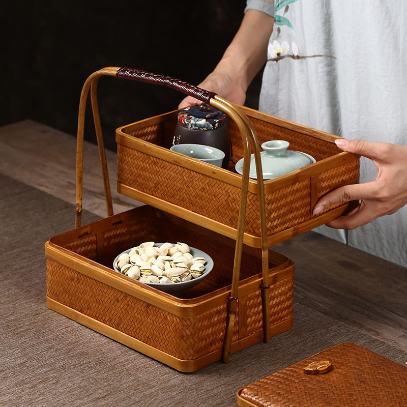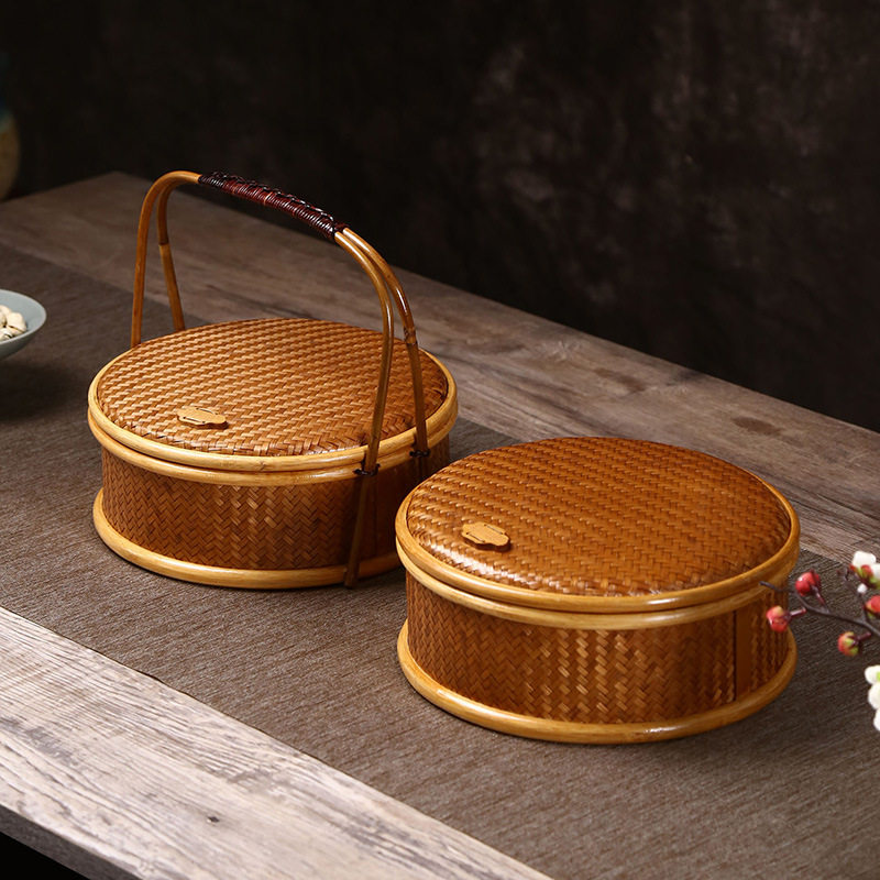 Бамбуковая рука -Недостатки ретро многослойные коробки с рисовыми пельмени, корзина для луны, корзина для подарочных закусок китайского стиля, фестиваль лодок -драконов