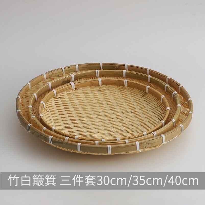 Бамбуковый круглый совок для мусора, маленькая бытовая корзина для копчения, антикварная корзина для сушки, корзина для хранения овощей, корзина для сушки овощей, корзина для фруктов, украшение, большая