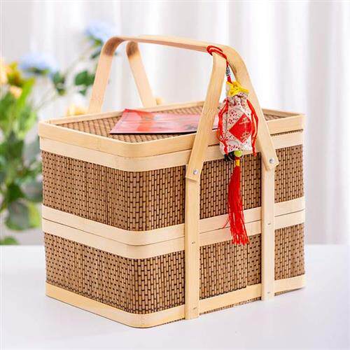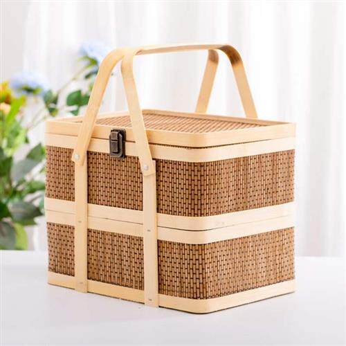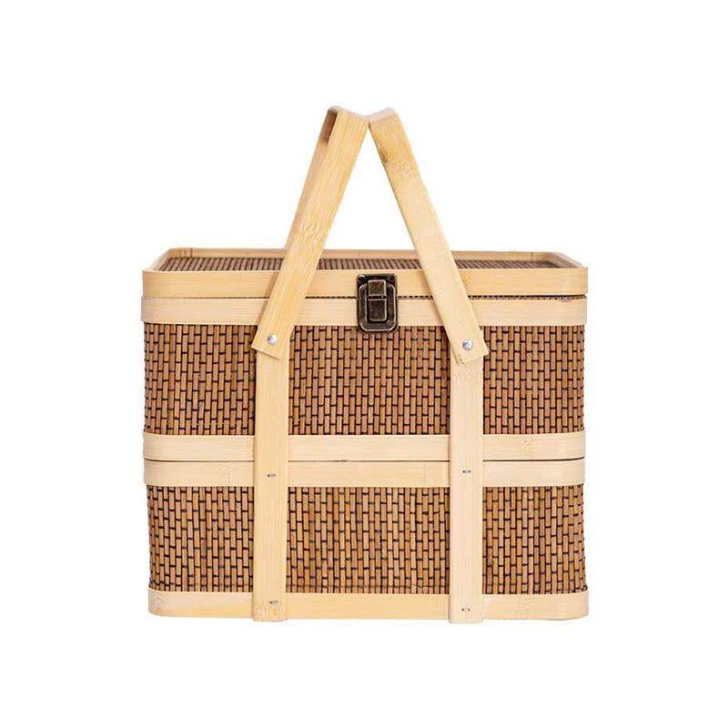 Жертвная пищевая коробка, нефритовая лоза переноски, бамбуковые корзины, пищу вручную, двухслойное поклонение, тканые бамбуковые корзины, древние пищевые корзины