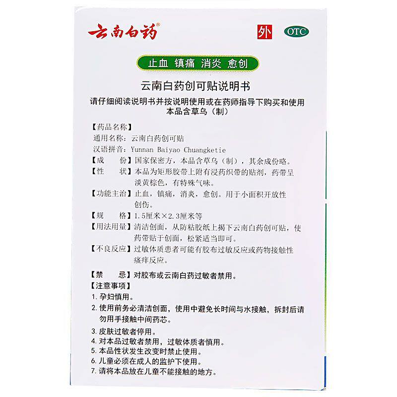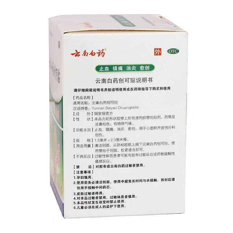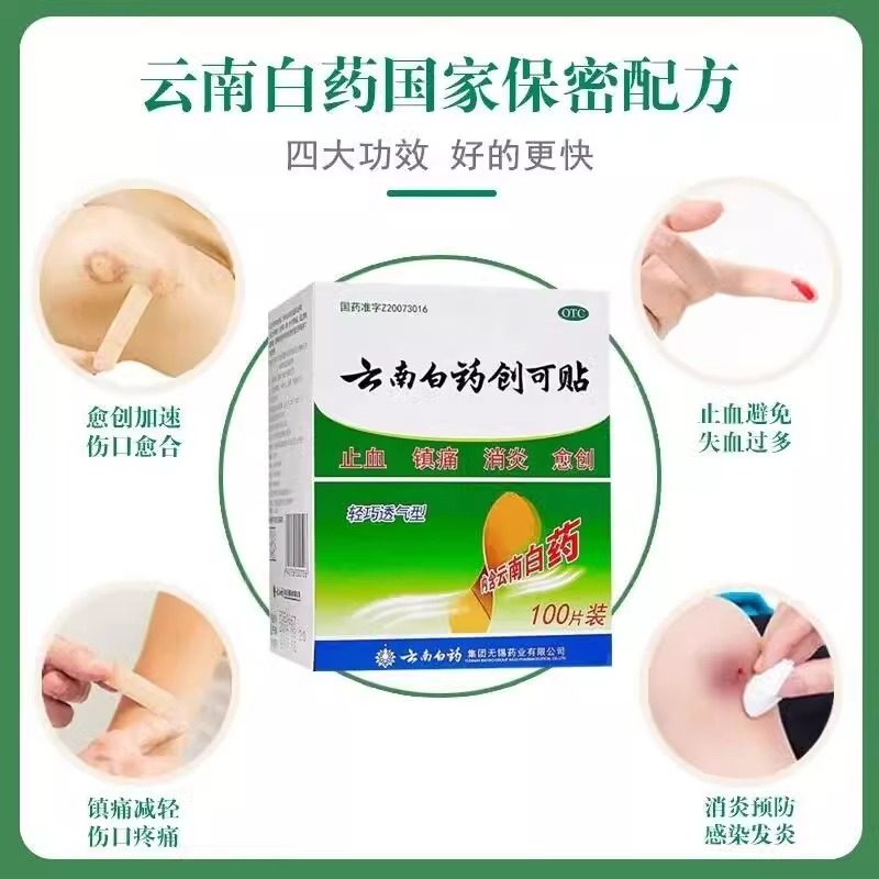 云南白药 Медицинский водонепроницаемый дышащий лейкопластырь, 100 штук