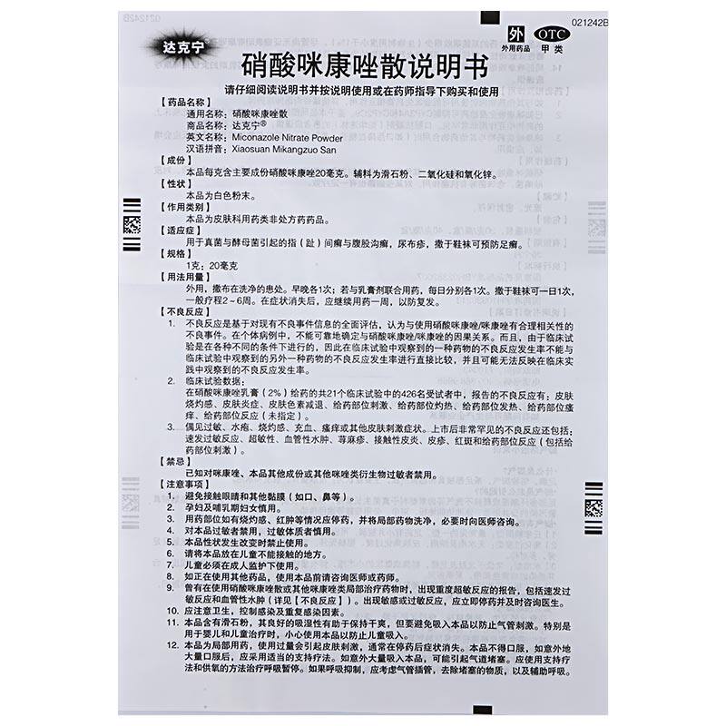 达克宁 SAN 20G Удалите спортсмена, чтобы удалить пилинг и зуд нитрат нитрат, спирт, рассеяние и рассеянную грибную инфекцию Dakin