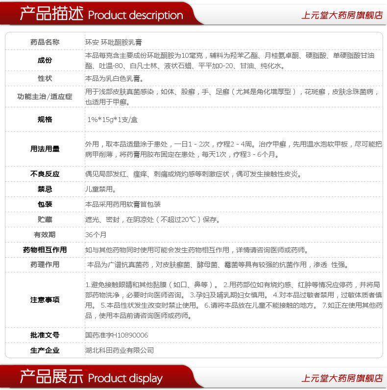 环安 Кружный пироминовый крем 15 г противогрибковой противогрибковой рукой и Tinea tinea tinea tinea, tinea, крем спортсмена спортсмен