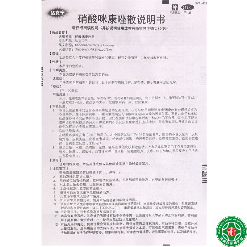 达克宁 Нитрат нитрат Сан 20 г*1/коробка пальца (см.)