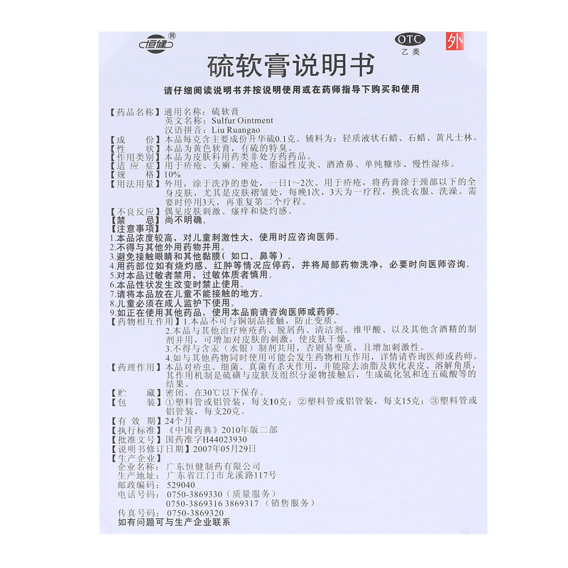 Основной компонент этого продукта сублимает 0,1 грамма серы.Вспомогательные материалы представляют собой светлоподобный жидкость, парафин, парафин и Хуан Ван Шилин.