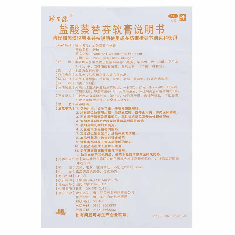 【Основные ингредиенты】Нафтифина гидрохлорид.