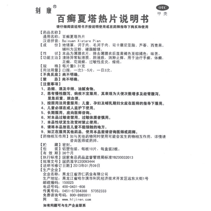 刻康 Топотическая летняя башня горячие таблетки 20 таблеток для лечения аллергического дерматита прыщи