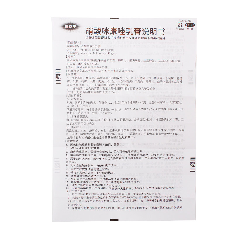 达克宁 Мазь нитрат нитрат мимоназол крем 20 г стричья тела, tinea -foot, tinea -и -тинея, угловое воспаление
