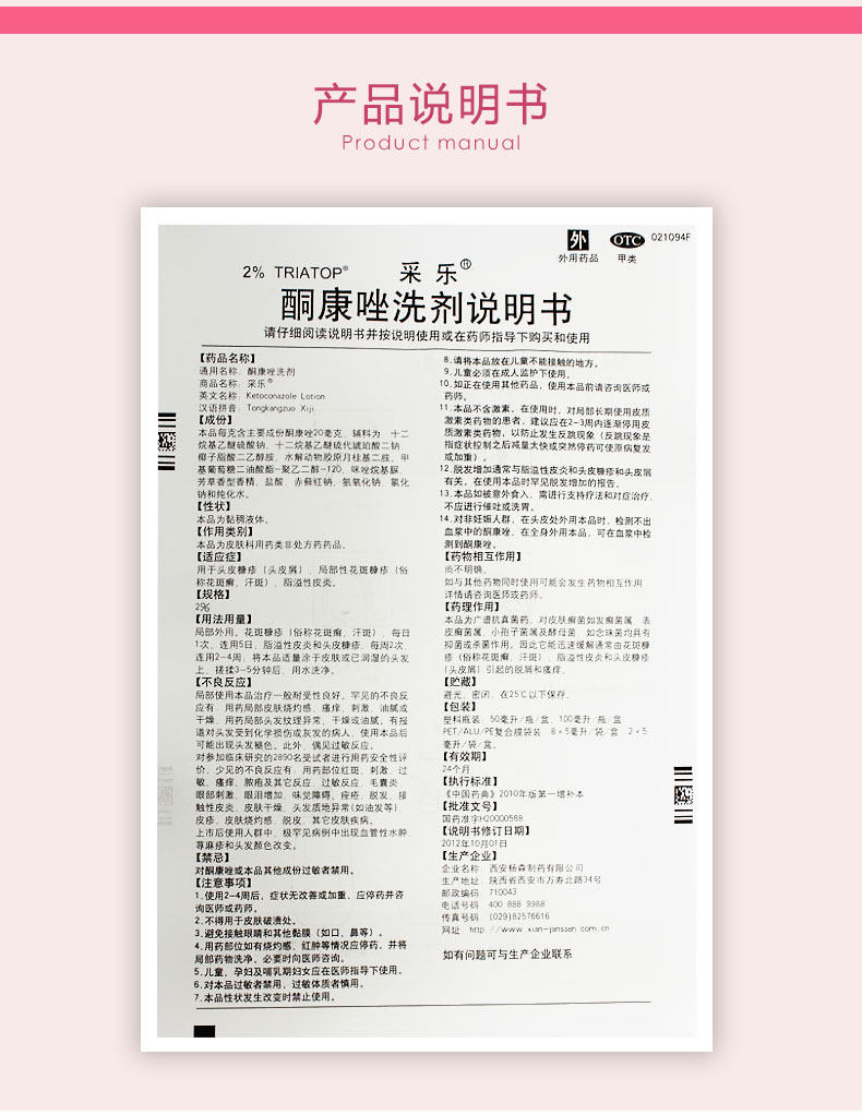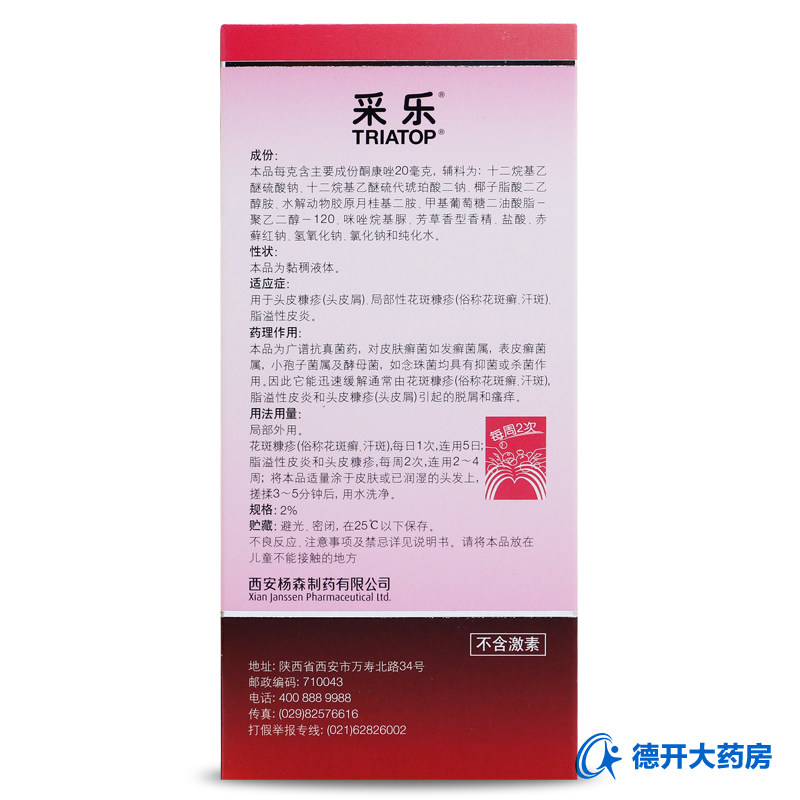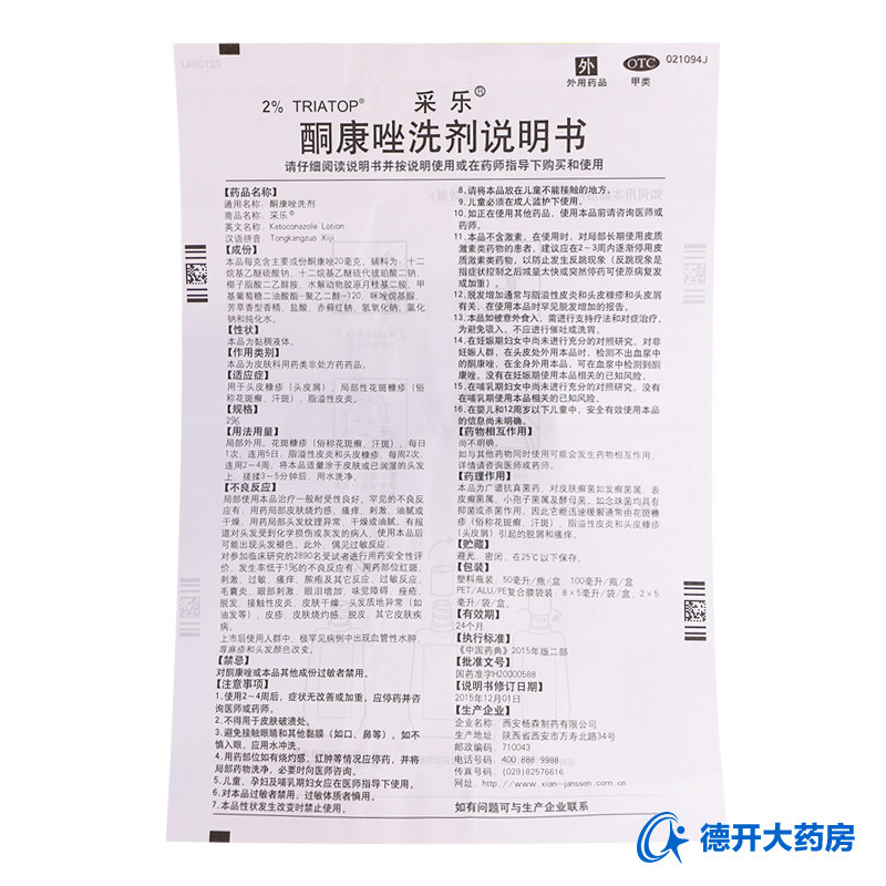 采乐 Кетоконазол для промывшего агента 50 мл 2%удаляет перхоти, анти -силовые, шампунь, дисплазия кортикатит, tinea, tinea,