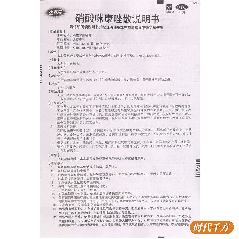 达克宁 Пастельный нитрат 20G используется для ногтей, вызванных грибками и дрожжами, ногтями на ногах и сыпь мочи
