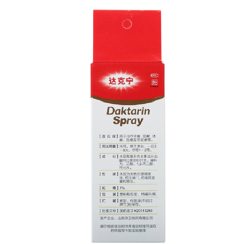 达克宁 Гидрохлорид Тобин Брызг 15 мл внешне с помощью крошечных ног, ног, ног, чтобы удалить спортсмена