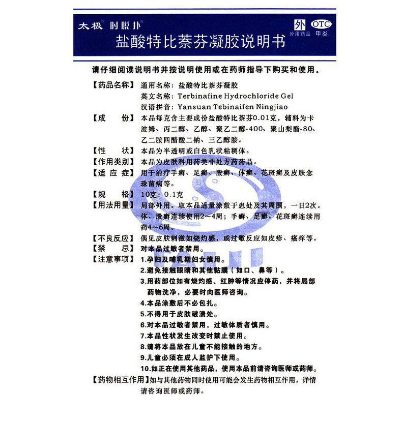 3 1 47] Terbi Fen Gel 10g рука и нога Tinea Toinea Stone Tinea tinea antrophopper, чем 萘 fen maintment