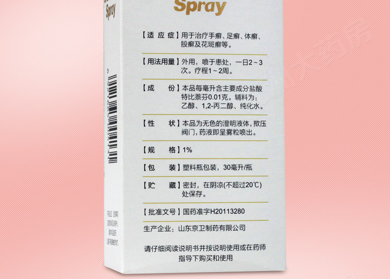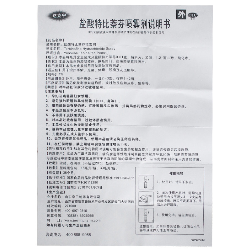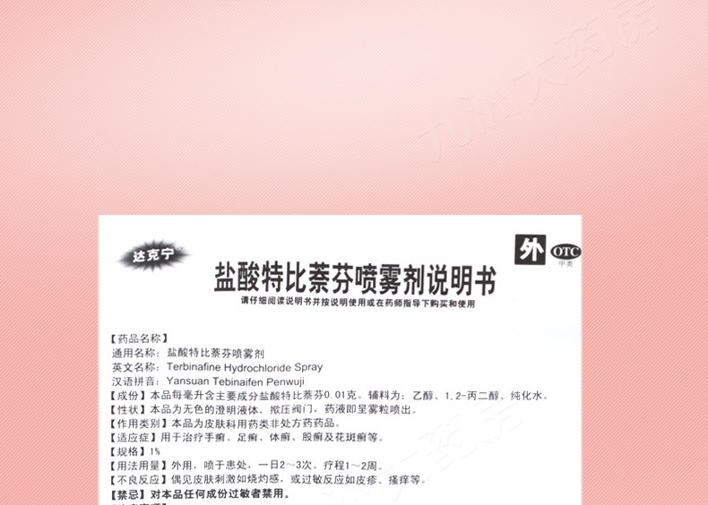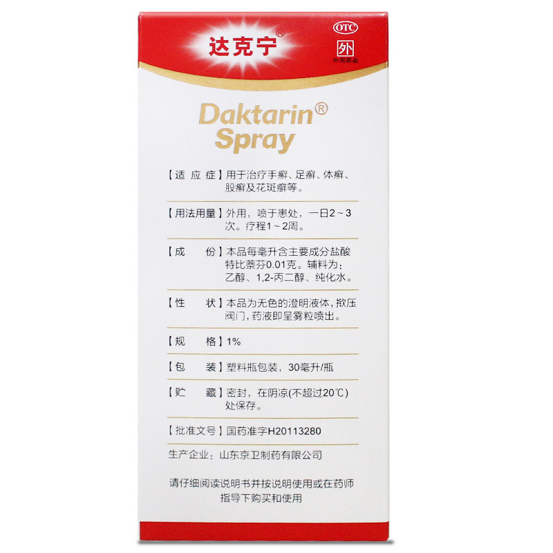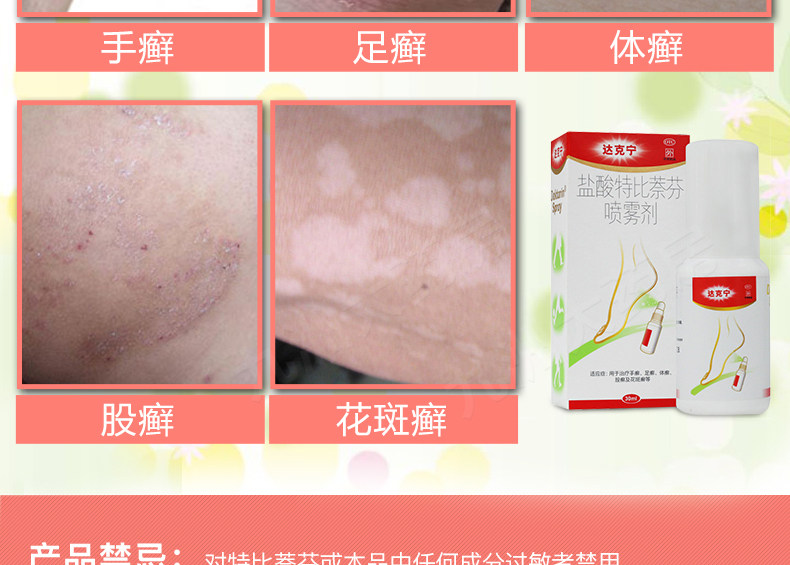 达克宁 Гидрохлорид спрей Тербин Фен Фен спрей 30 мл рук, ноги и тошины Tinea Tinea, пальцы ног