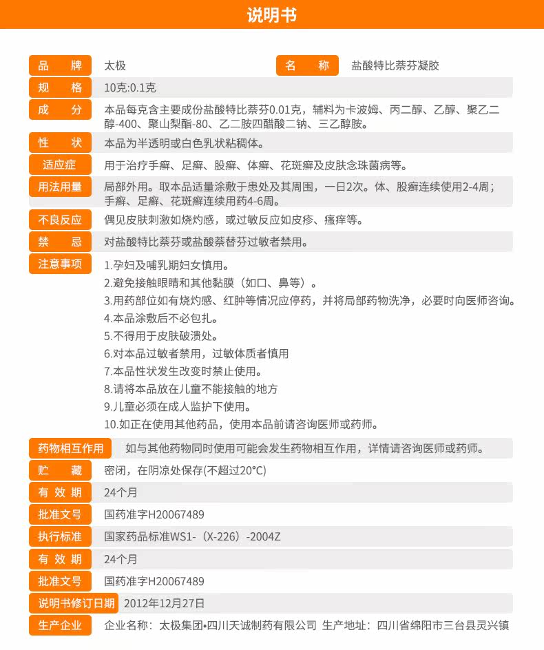 太极 Гидрохлорид Тербин гель 10 г