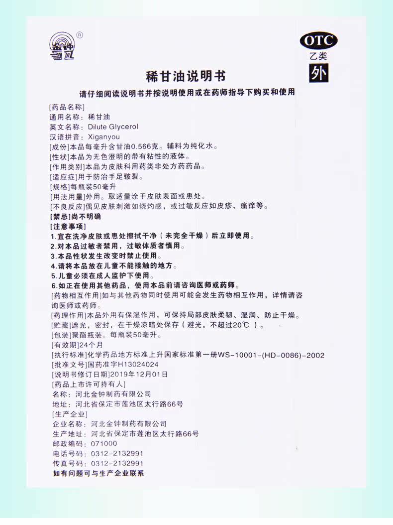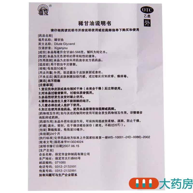 金钟 Lean Glycerin 50 мл*1 бутылка/коробка используется для предотвращения взлома рук и ног